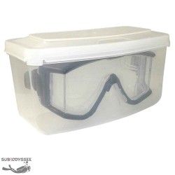 Boite à masque rigide en plastique pour ranger, transporter & protéger votre masque des chocs, des rayures & des effets néfastes des UV sur les jupes en silicone clair.