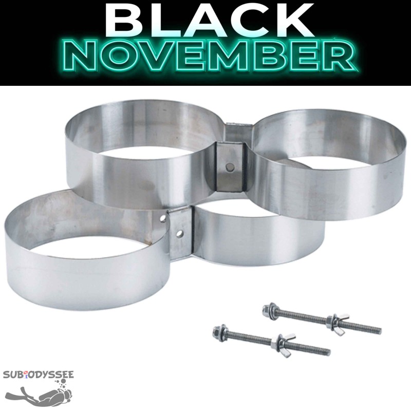 Cerclages OMS en inox pour le montage de 2 blocs de plongée de diamètre 186 mm, vendus à l'unité ou à la paire.