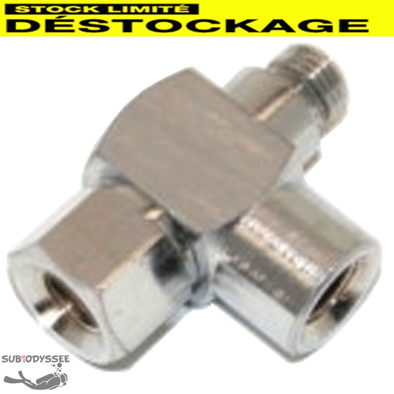 Adaptateur idéal pour dédoubler une sortie Haute Pression de votre détendeur pour y loger à la fois un manomètre et un émetteur sonde d'ordinateur.