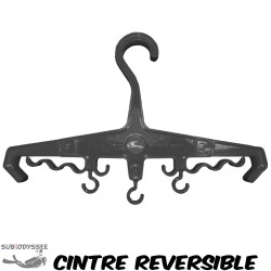 Cintre multifonction permettant de suspendre & ranger : - Stab ou Vêtement : le cintre permet de suspendre les combinaisons ou les stabs - Détendeur : ce cintre peut également recevoir les détendeurs DIN & les Etriers INT. - Nombreux accessoires : Grâce aux différents ergots vous pouvez également y accrocher vos gants, chaussettes, bottillons ....