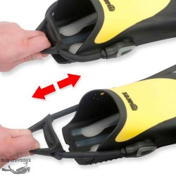 Avec la sangle de talon élastique, enfiler ou retirer une palme devient facile, & le confort au cours de la plongée est garanti par le couvre-talon ergonomique.