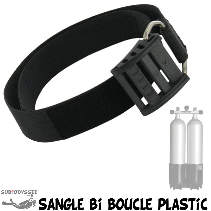 Sangle de fixation du gilet stabilisateur sur un bi-bouteille avec boucle plastique.