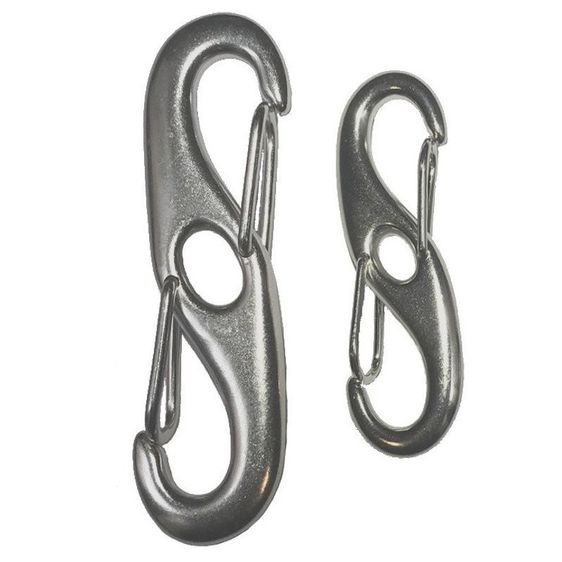 Mousqueton double inox VELA, fermé, avec oeillet central, très solide.