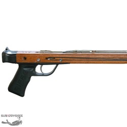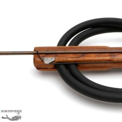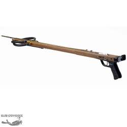 Equipé de série de deux sandows Riffe ligaturés avec obus en dyneema de Ø16 mm, la portée de tir est estimée à plus de 5 mètres pour une version type 90 cm.