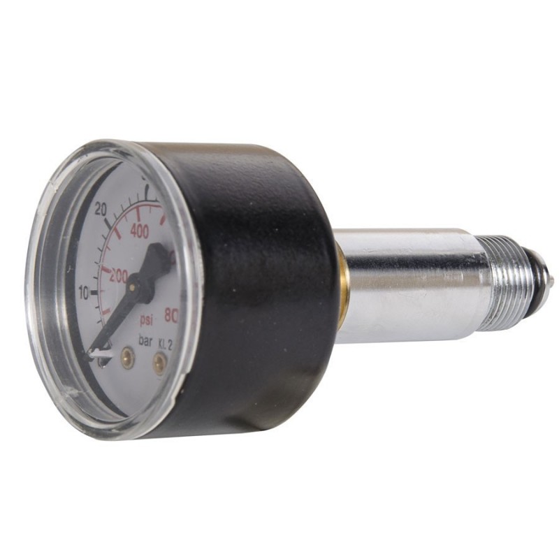 Lorsque vous vissez cet accessoire sur le port d'alimentation, le manomètre affiche la pression dans le fusil.