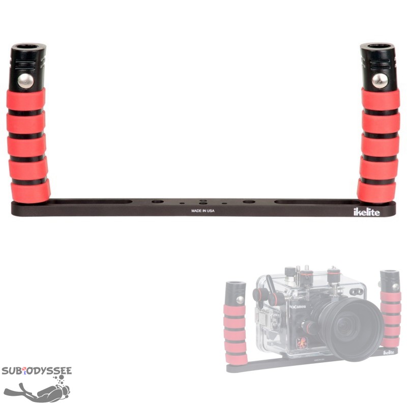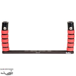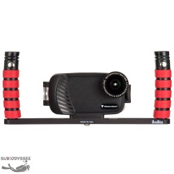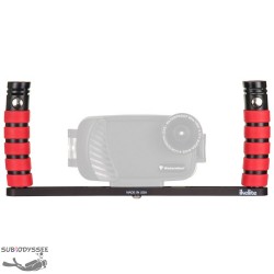 Platine avec poignée double Ikelite à grip rouge en aluminium.