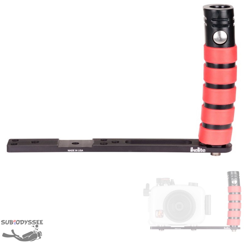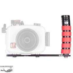 Platine et poignée simple Ikelite à grip rouge en aluminium.