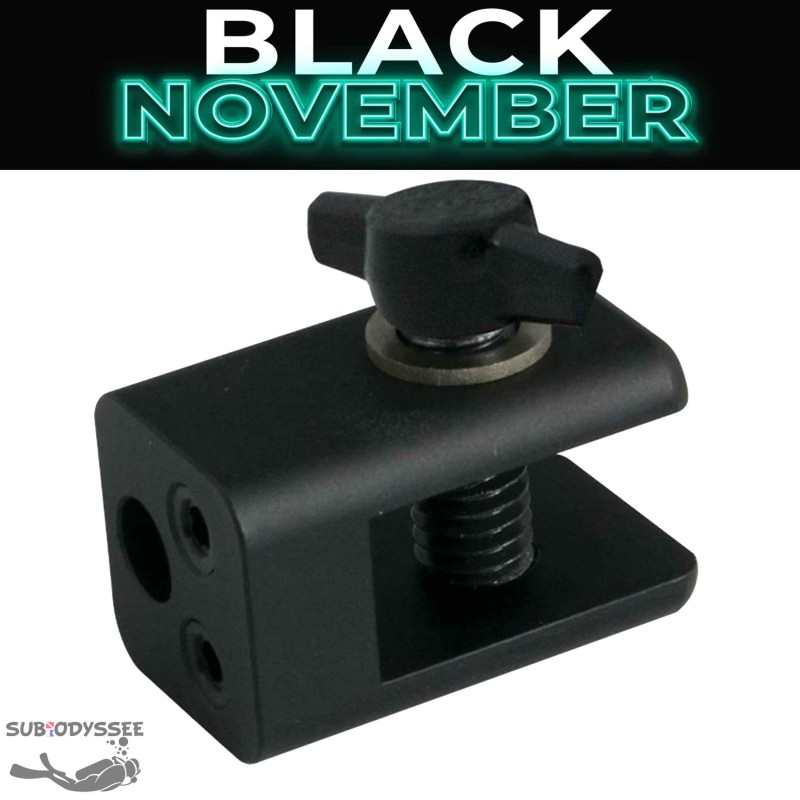 Une vis papillon passe à travers l'adaptateur pour le fixation vers le bras Sea and Sea.