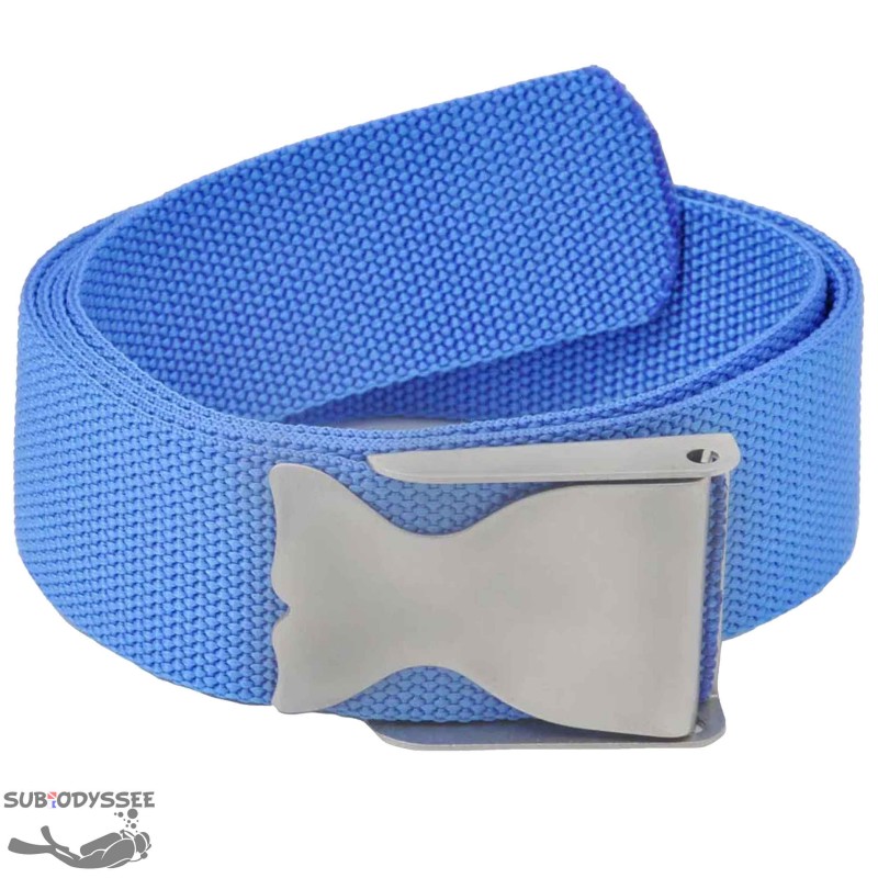 Caractéristiques Techniques : Matière sangle : Nylon haute résistance Longueur sangle : 150 cm Largeur sangle : 5 cm Matériau boucle : acier inoxydable Type boucle : US à Rabat Compatibilité : systèmes de lestage standards Usage : - plongée bouteille - apnée - snorkeling