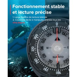 Le grip renforcé & le déplacement de cinq degrés de la lunette tournante ont été pensés pour éviter que des grains de sable ou des impuretés viennent perturber le bon fonctionnement de la boussole.