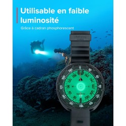 La boussole SK8 possède un angle d'inclinaison d'exception de +/-30 degrés, ce qui est 2 à 3 fois supérieur à l'angle d'inclinaison des boussoles de plongée conventionnelles.