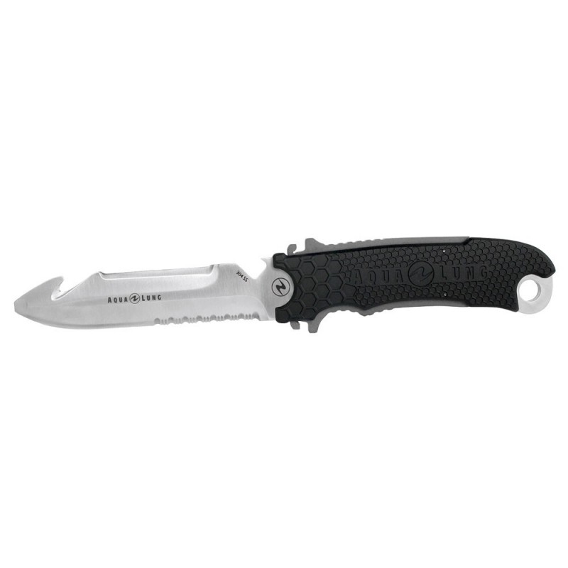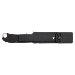 - Lame Blunt Tip : Mécanisme Squeeze-Lock, pointe arrondie pour faire levier, coupe-fil, décapsuleur, œillet pour dragonne, manche articulé, options de fixation à un gilet de stabilisation, à la jambe ou à une ceinture