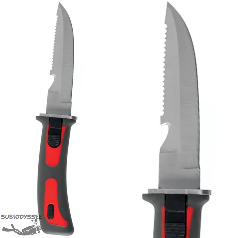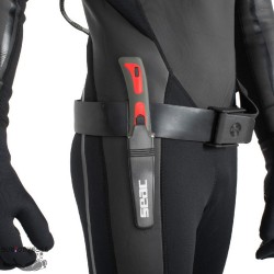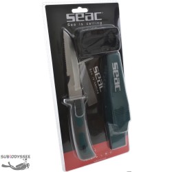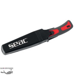 Le BAT de Seac est un petit couteau, plat & ergonomique, qui se met dans sa gaine & se retire facilement, & un système de retrait qui évite les pertes accidentelles, du fait que deux boutons doivent être pressés simultanément pour extraire le couteau de sa gaine.