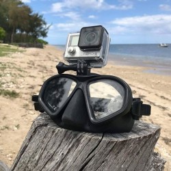 -La fixation est placée sur le dessus du masque de façon à ne pas gêner le confort et l’étanchéité de la jupe, & centrée horizontalement pour une capture d’images facile dans le champ de vision du plongeur ou du pêcheur sous-marin.