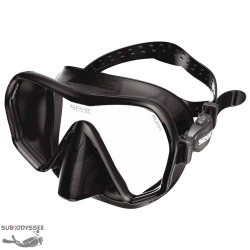 - Masque mono-hublot au design sans cerclage en verre trempé avec une jupe en silicone, qui garantit un large champ de vision.