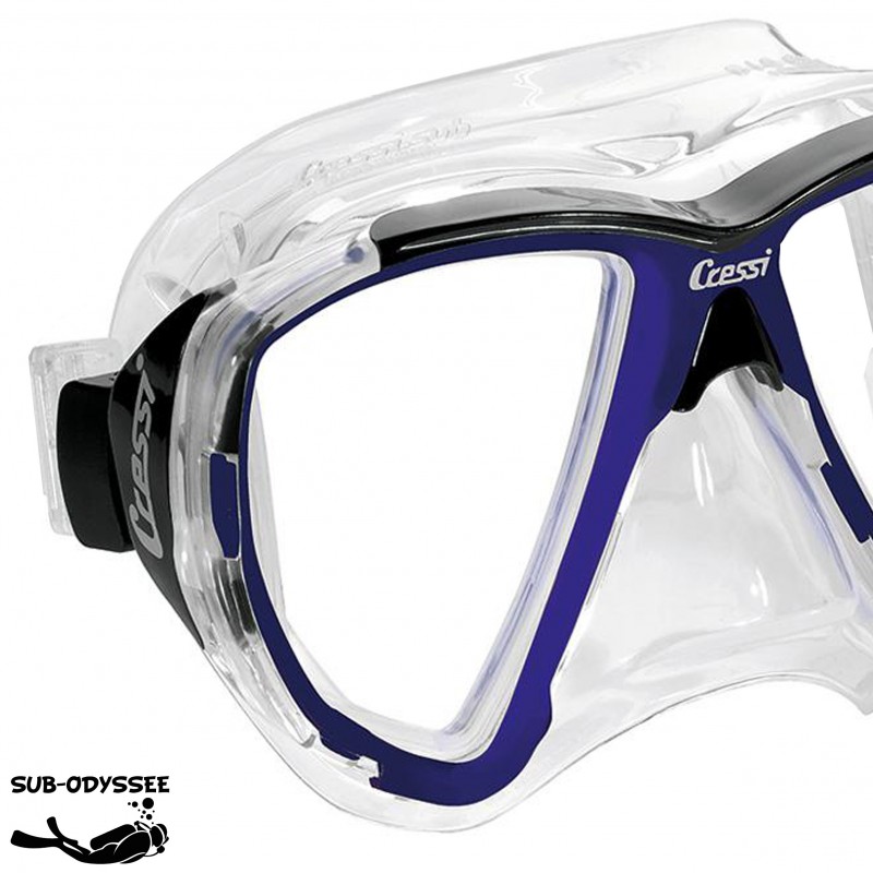 - CRESSI est la marque qui a inventé la forme en goutte d'eau inversée, augmentant de ce fait la vision du plongeur dans toutes les directions.