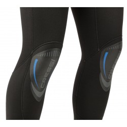 - Genoux & épaules avec renforts élastiques Tatex® résistants à l'usure. Ce type de renfort ne limite pratiquement pas l'élasticité du néoprène, fournit un renfort suffisant & facilite le positionnement de la combinaison.