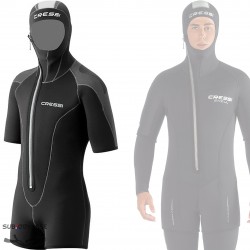 Une fois couplée à la monopièce, cet ensemble devient optimal pour des plongées dans des eaux fraiches, voire froides, où la double épaisseur de néoprène (monopièce + surveste) disponibles sur le thorax permettent une parfaite conservation de chaleur.