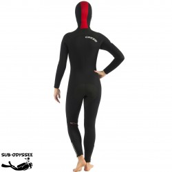 - Une garniture en néoprène lisse recouvre l'intérieur du contour du visage de la cagoule ce qui limite les entrées d'eau & augmente le confort.