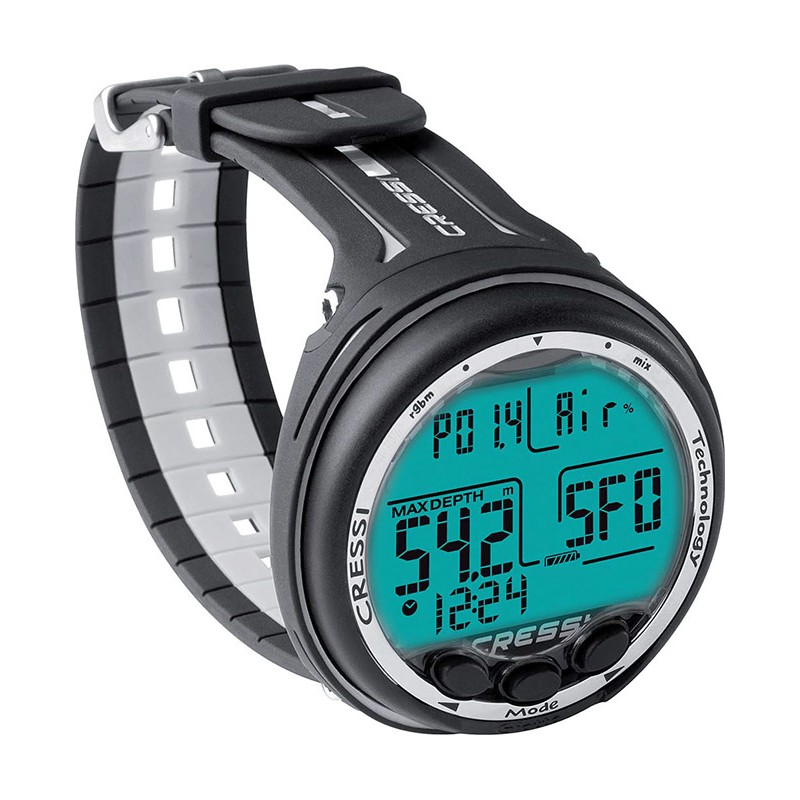 Algorithme double mélange gazeux CRESSI RGBM. Ce nouvel algorithme, créé en collaboration entre Cressi & Bruce Wienke, est basé sur le modèle Haldane, intégrant les facteurs RGBM pour des calculs sûrs de décompression dans les cas de plongées répétitives sur plusieurs jours & avec des mélanges gazeux.