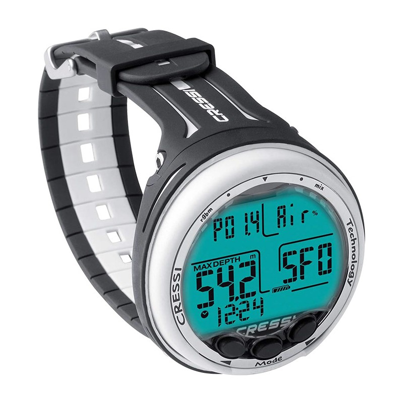 Algorithme double mélange gazeux CRESSI RGBM. Ce nouvel algorithme, créé en collaboration entre Cressi & Bruce Wienke, est basé sur le modèle Haldane, intégrant les facteurs RGBM pour des calculs sûrs de décompression dans les cas de plongées répétitives sur plusieurs jours & avec des mélanges gazeux.