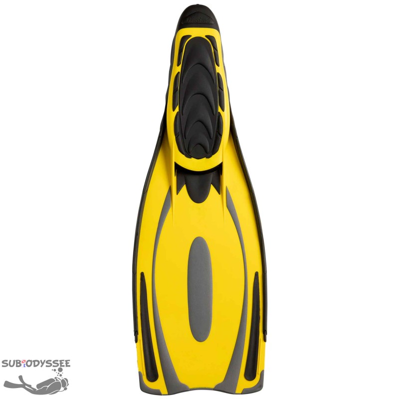 - Design innovant : La voilure commence sur le dessus du chausson, augmentant la surface utilisable de 20% par rapport aux palmes traditionnelles de longueur similaire. Ce design innovant garantit une transmission optimale de la puissance de votre jambe vers la palme.