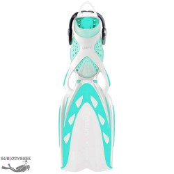 Permet à la voilure de conserver un angle optimal tout au long du cycle de battement, alors que les palmes traditionnelles n'y parviennent que lors d'une petite partie de ce cycle. L'OPB génère une poussée constante, ce qui minimise la fatigue & produit un mouvement fluide dans l'eau.