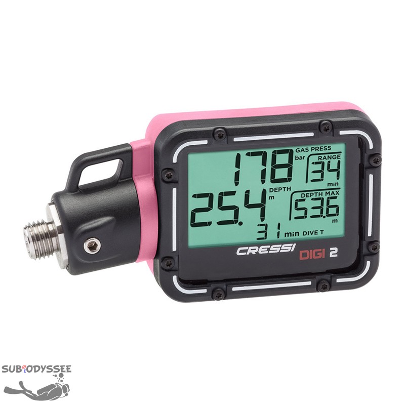Avec DIGI 2, Cressi propose un instrument de haute précision qui fournit les indications de pression de l'air, mais aussi d'autres données d'intérêt constant pour le plongeur.