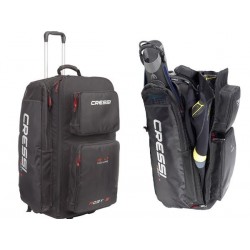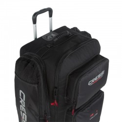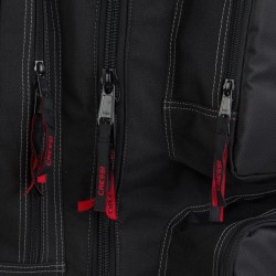 - 2 grandes poches à soufflets sur le devant, avec des fermetures à glissières, 2 poches latérales pour les palmes & 1 petite pochette sur le dessus pour l'adresse.