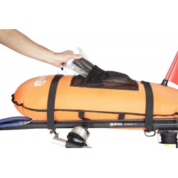 La bouée est livrée avec un fanion de plongée distinctif de 20 cm x 20 cm. Une grande poche en maille est située sur le dessus.