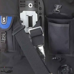 - Sangle ventrale réglable compense la compression de la combinaison et garantit ainsi un ajustement parfait, quelle que soit la profondeur.